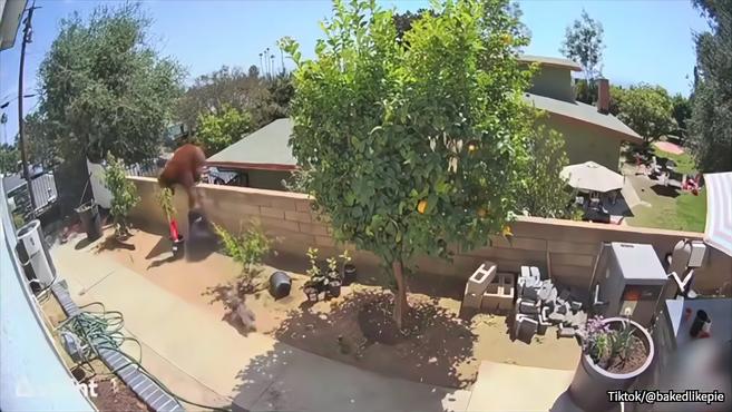 家中黑狗战败 美国17岁女孩徒手把棕熊推下围墙