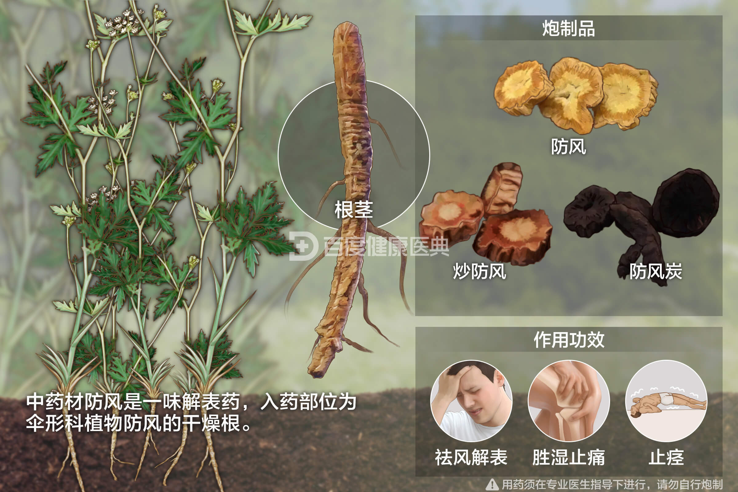 防风具有祛风解表,胜湿止痛,止痉的功效。