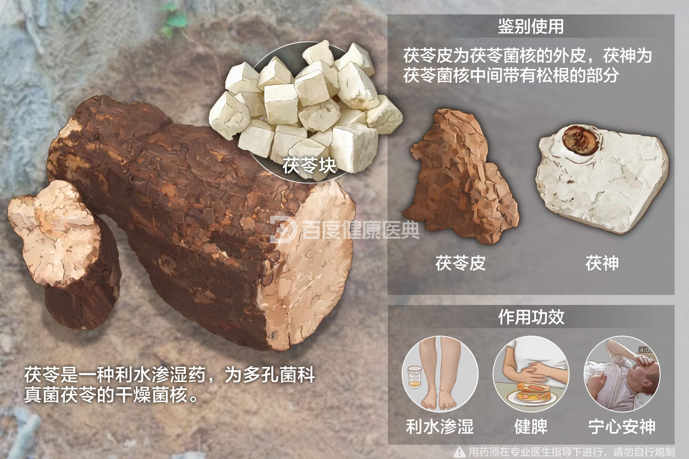 茯苓是一种利水渗湿药,为多孔菌科真菌茯苓的干燥菌核。