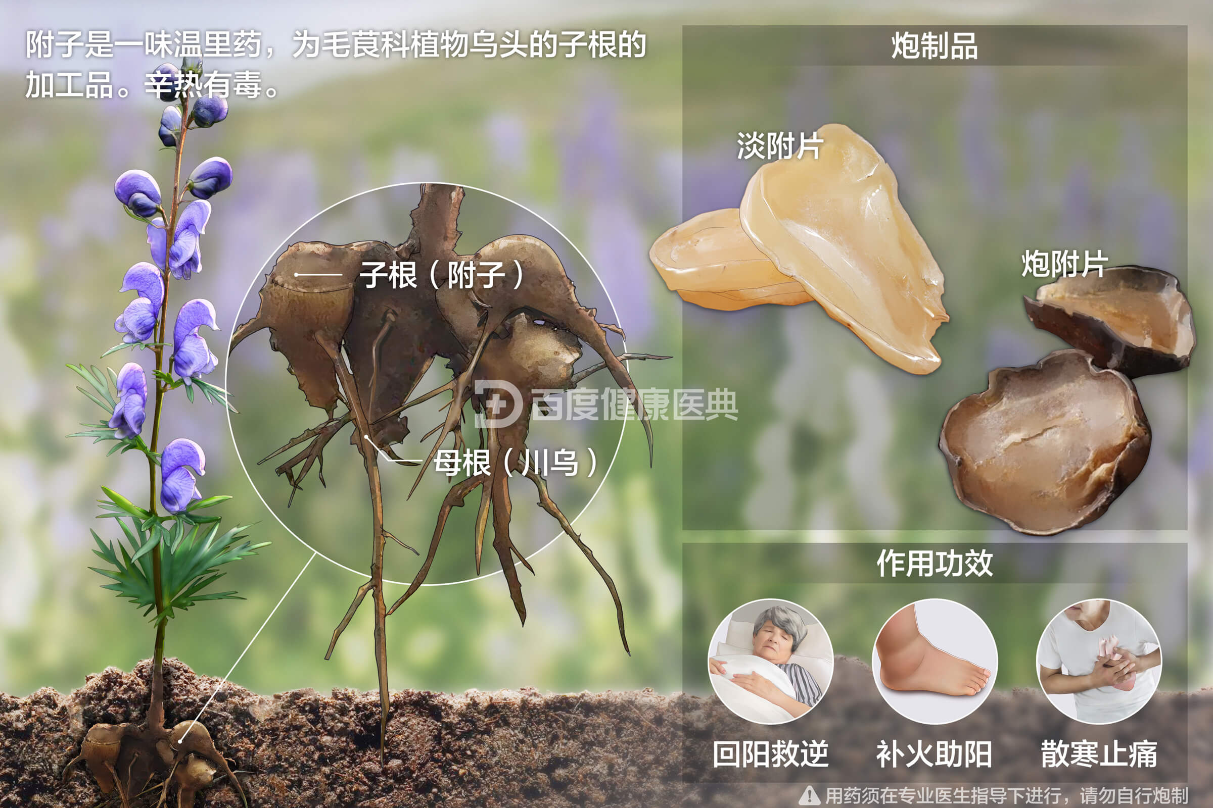 附子具有回阳救逆,补火助阳,散寒止痛的功效。