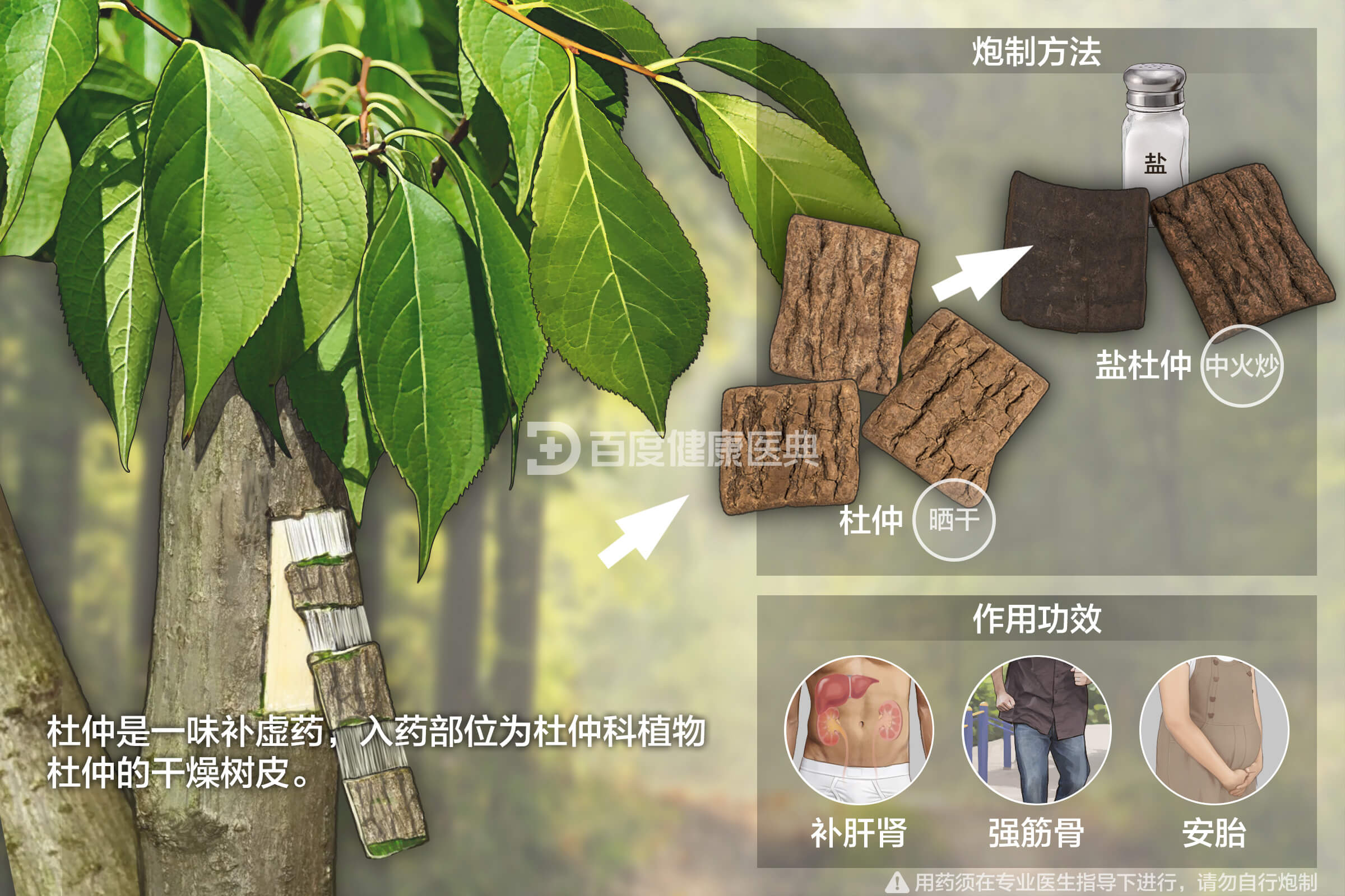杜仲具有补肝肾,强筋骨,安胎的功能。
